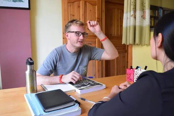 Practicing tonal languages with a native speaker is critical in the learning process. A student practices speaking material with her teacher during a one-on-one Chinese class at CLI.