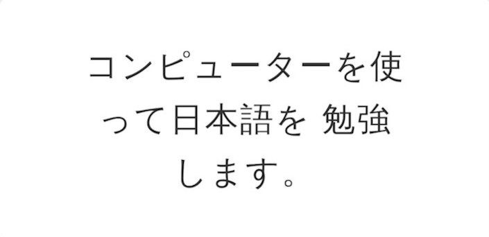 Example of modern Japanese writing: combining Katakana (コンピューター for 'computer'), Hiragana (を, て, を grammatical particles), and Kanji (使, 日本語, 勉強) meaning 'I study Japanese using a computer'