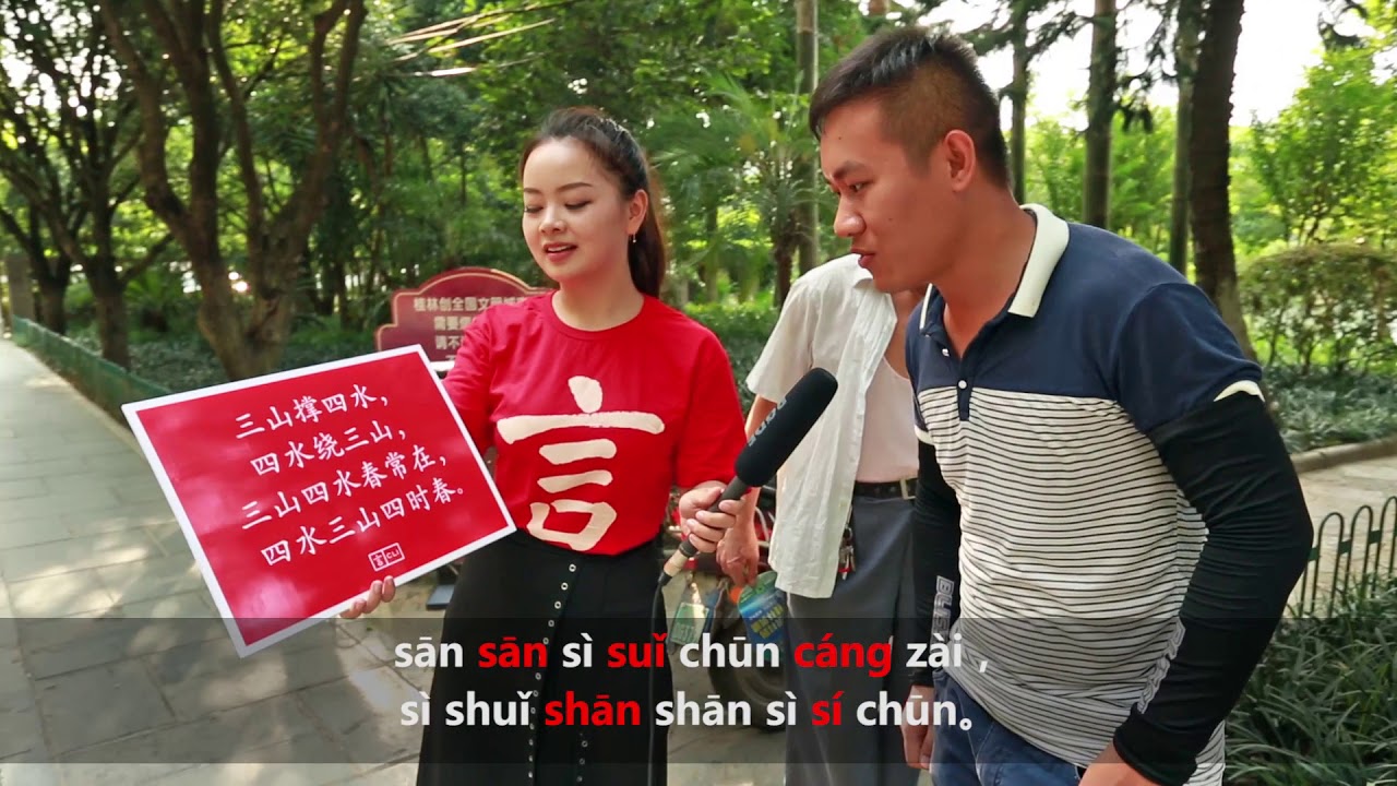 Learning Chinese tongue twisters (绕口令, ràokǒulìng) makes for great language practice. Learning tongue twisters with native Chinese speakers in real-life situations makes it even better. In this CLI series, CLI's own Zicong 老师 (lǎoshī, teacher) ventures through the scenic pathways and lively downtown sidewalks of Guilin to see who can master Mandarin's trickiest word games.
